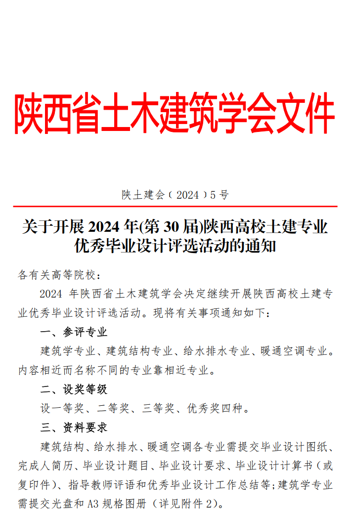 上一篇:关于开展第九届(2024年度)陕西省土木建筑科技进步奖推荐工作的通知