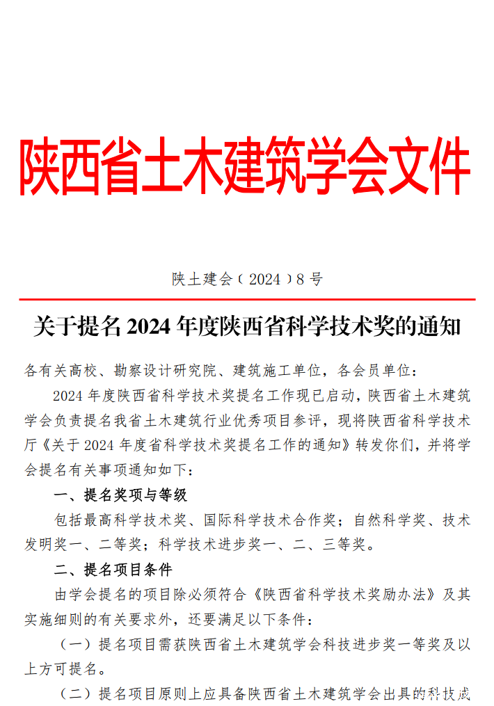 下一篇:关于开展第九届(2024年度)陕西省土木建筑科技进步奖推荐工作的通知