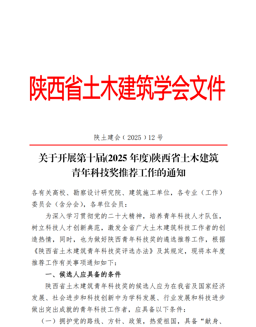 下一篇:关于开展第二届陕西省土木建筑终身成就奖推荐工作的通知
